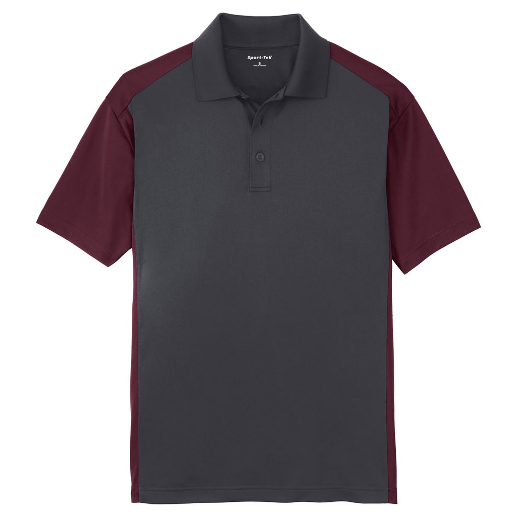 Sport-Tek Men's Iron Grey/Maroon Colorblock Micropique Sport-Wick Polo