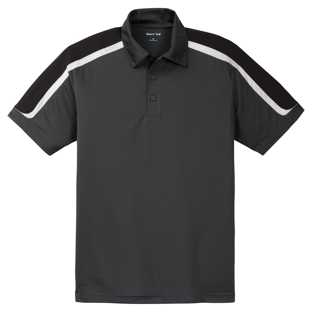Sport-Tek Men's Iron Grey/Black/White Tricolor Shoulder Micropique Sport-Wick Polo