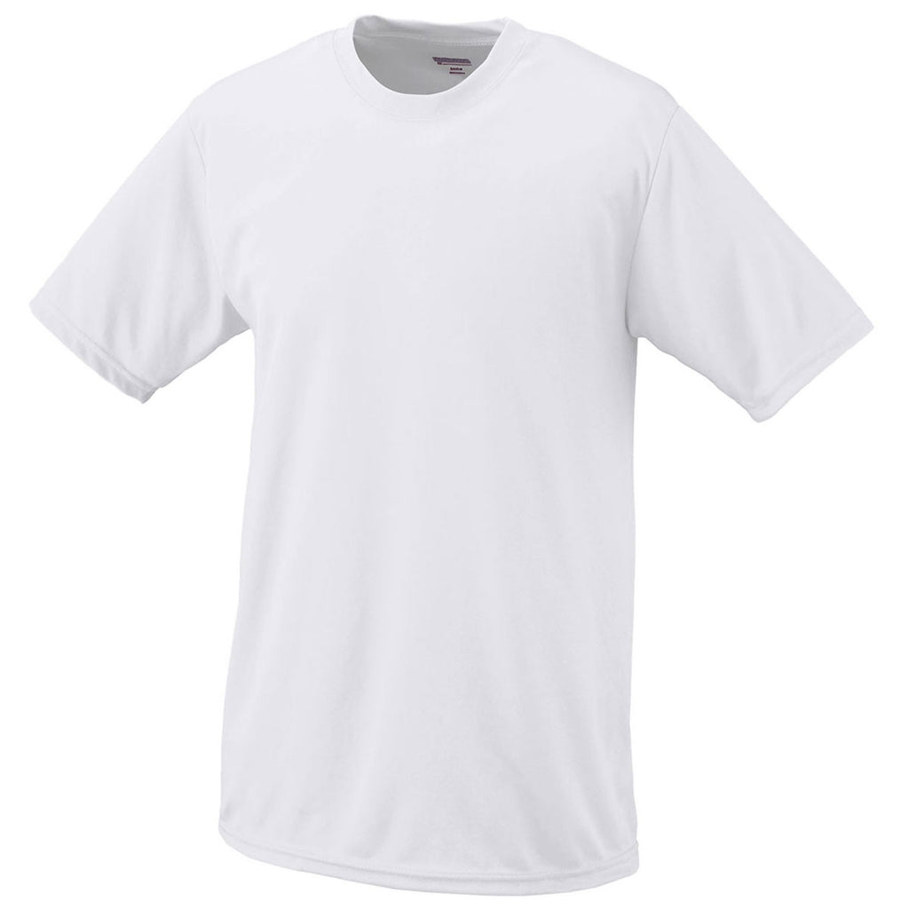 Create your custom logo on Augusta Sportswear Men's White Wicking T-Shirt. This style offers comfort; ideal for any activity of the day. Available in 28 eye-catching colors, this men's t-shirt offers a wide array of features, including wicking capabilities with the 100% polyester fabric, tear away label, double-needle hem sleeves and bottom, self-fabric collar, and more. Purchase this popular t-shirt in bulk and you have a great corporate apparel gift to hand out to employees or distribute at upcoming golf events and trade shows. With your screen print company logo on the front, you have a great advertising item as well.Corresponding Women's Style: Augusta Sportswear Women's White Wicking-T-Shirt