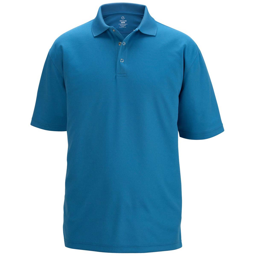 Create a unique custom look with the Edwards Men's Marina Blue Snap Front Hi-Performance Short Sleeve Polo in six classic colors. Offering a lightweight mesh fabric that wicks moisture, resists wrinkles, and releases soil this 100% polyester polo offers unique snap closure placket for easy wear. Add a company logo or corporate embroidery to use these polos as hospitality apparel for those who are the face of the company or as general employee apparel for all who work in the organization. Be rental ready with these easily laundered polos that will work in most any situation as apparel for those in your company.Highlights