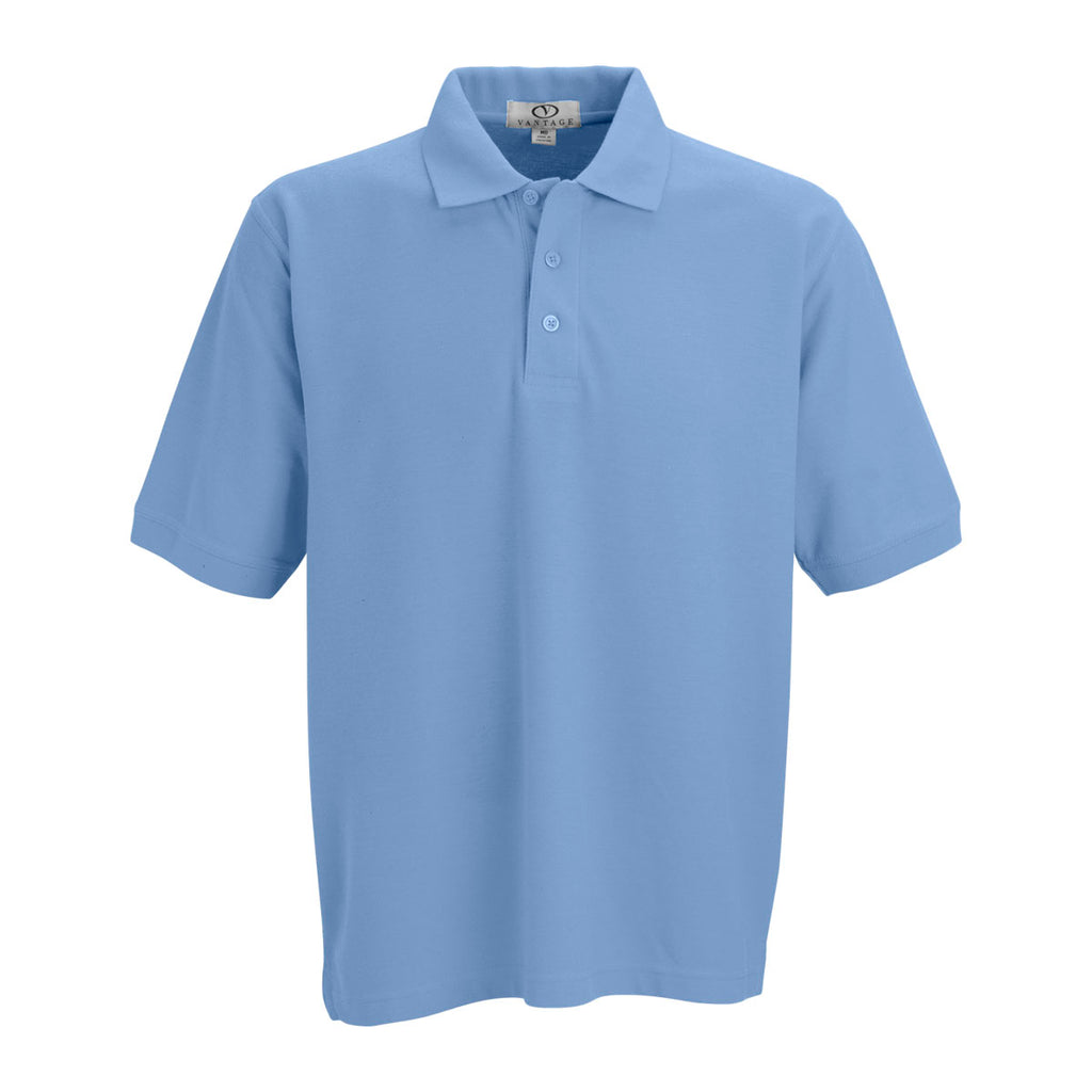 Vantage Men's Carolina Blue Soft-Blend Double-Tuck Pique Polo