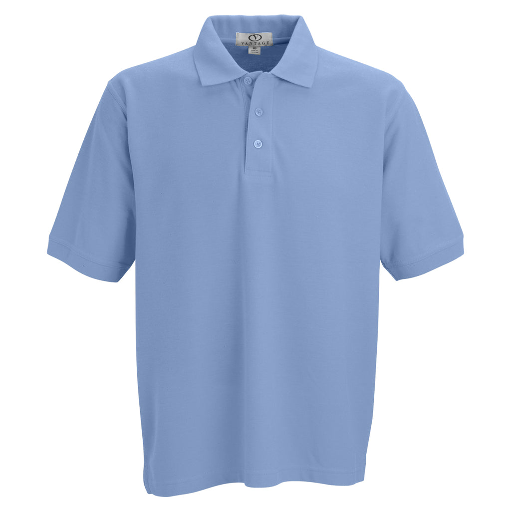 Vantage Men's Carolina Blue Soft-Blend Double-Tuck Pique Polo