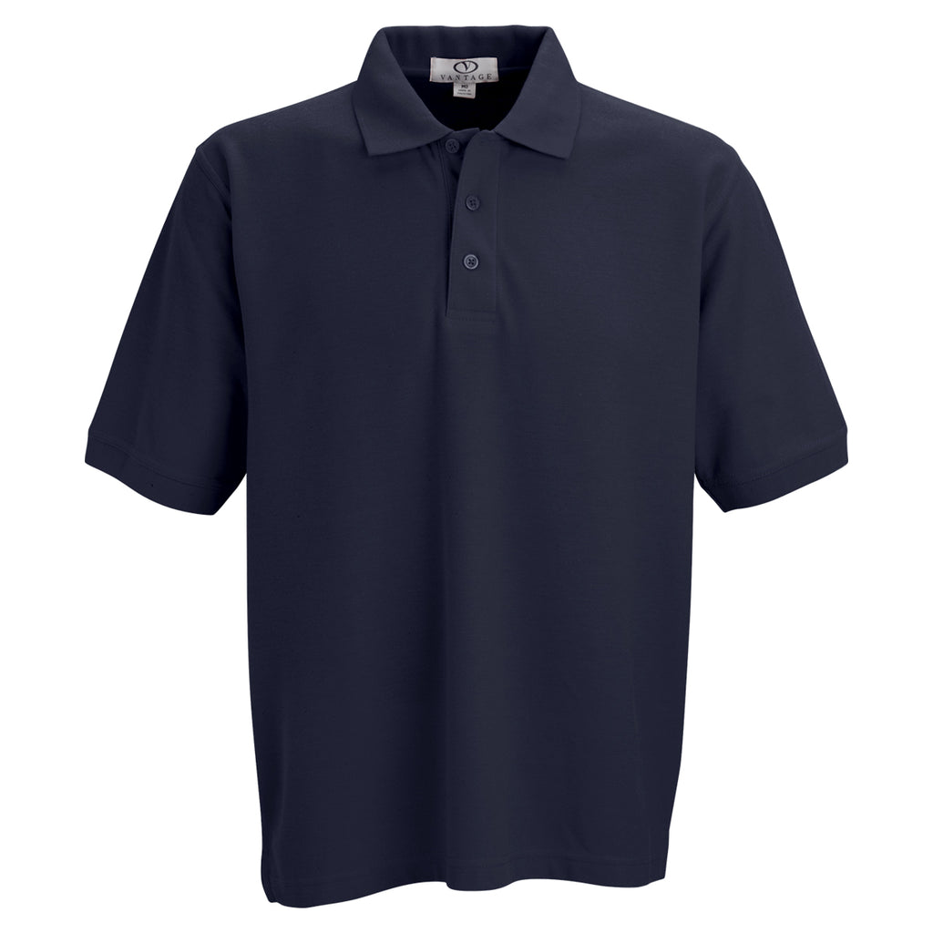 Vantage Men's Navy Soft-Blend Double-Tuck Pique Polo with a custom logo will turn heads. The double-tuck pique body with solid trim has double-needle top-stitching for a polished look. Great for golf, as a uniform, or as a promotional item for special events. Place your order today before these sell out.Corresponding Women's Style: Vantage Women's Navy Soft-Blend Double-Tuck Pique Polo