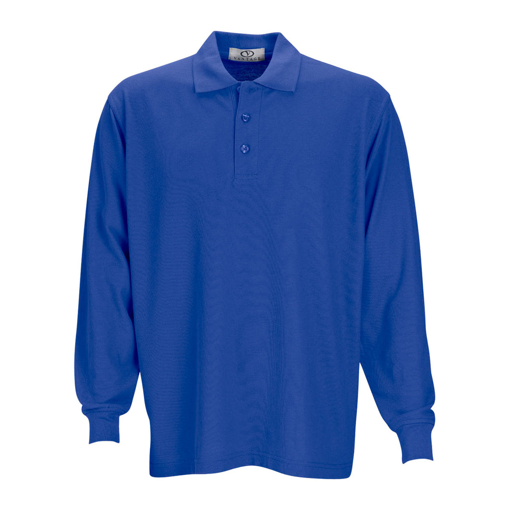Vantage Men's Royal Long Sleeve Soft-Blend Double-Tuck Pique Polo
