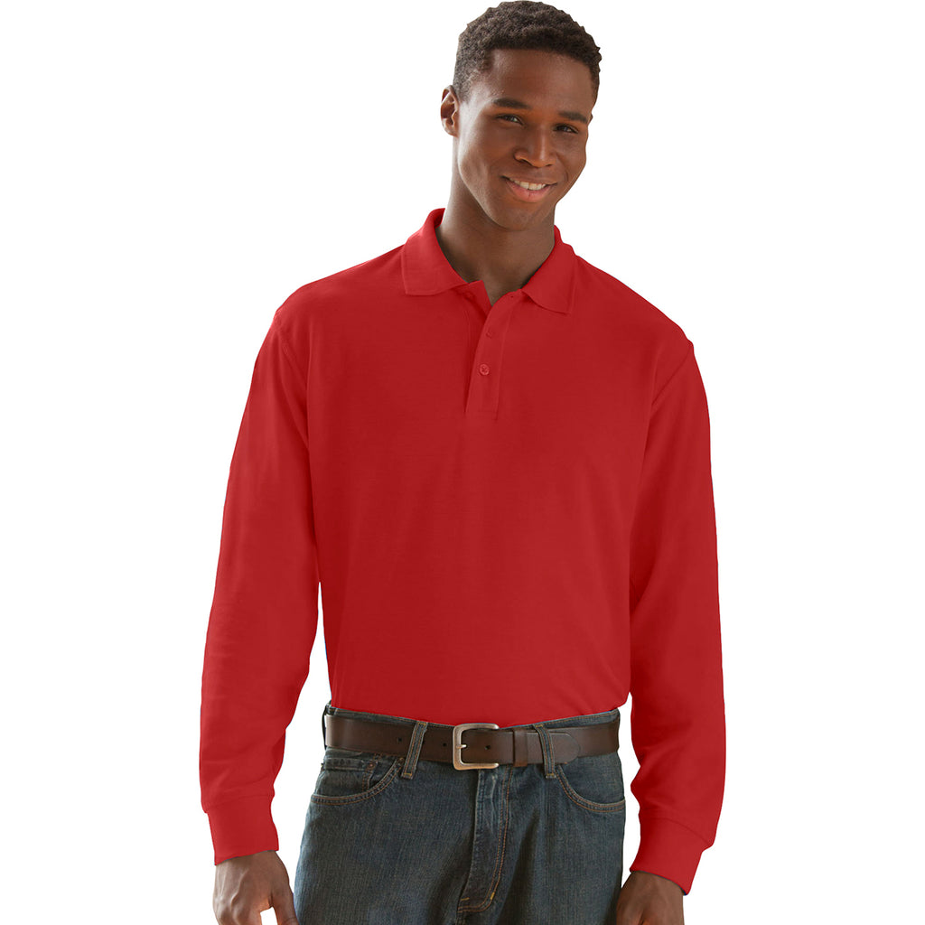 Vantage Men's Red Long Sleeve Soft-Blend Double-Tuck Pique Polo