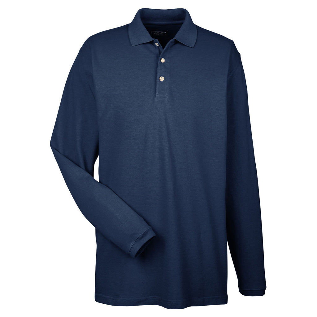 UltraClub Men's Navy Long-Sleeve Classic Pique Polo