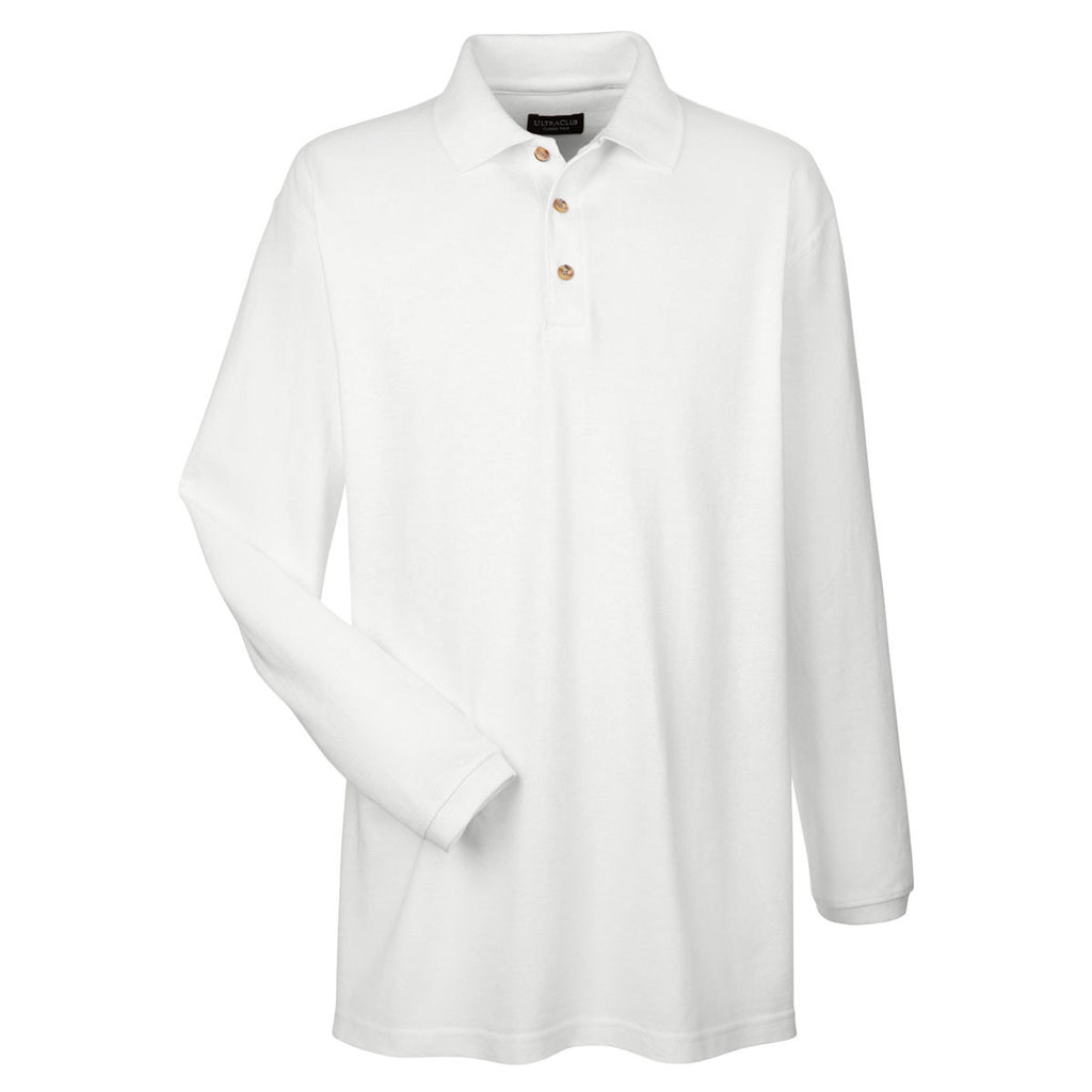 UltraClub Men's White Long-Sleeve Classic Pique Polo