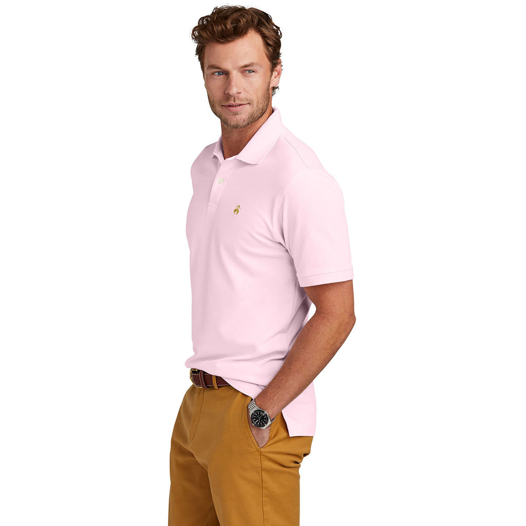 Brooks Brothers Men's Pearl Pink Pima Cotton Pique Polo with custom embroidery is a simple and clean-cut way to help enhance your wardrobe. The Pima cotton and spandex pique fabric will stand up to a hard day's work whether in the office or on the road. Add a company logo to use this polo as a uniform or create something unique to enhance your line. Order today.