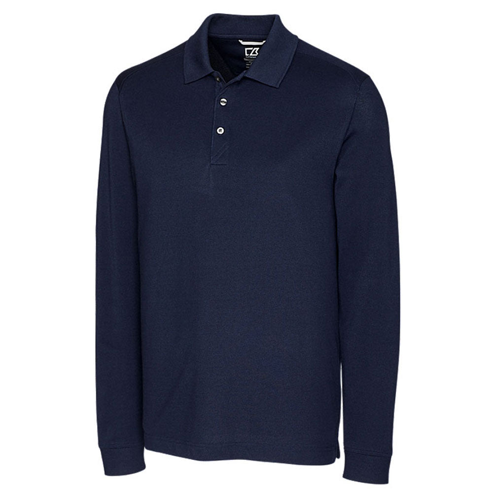 The Cutter & Buck Men's Liberty Navy Tall DryTec Long Sleeve Advantage Polo is a comfortable top for people to wear at recruiting events. The design offers enough room for a custom logo on the breast pocket. The logo will blend in perfectly with the cotton and polyester mix included here. The three-button placket layout adds a good surface with a forward-angled shoulder layout that fits a man's body perfectly. In fact, the conforming design of the Cutter & Buck Men's Liberty Navy Tall DryTec Long Sleeve Advantage Polo makes it ideal to wear during corporate golf events without restricting the man's movements.Highlights
