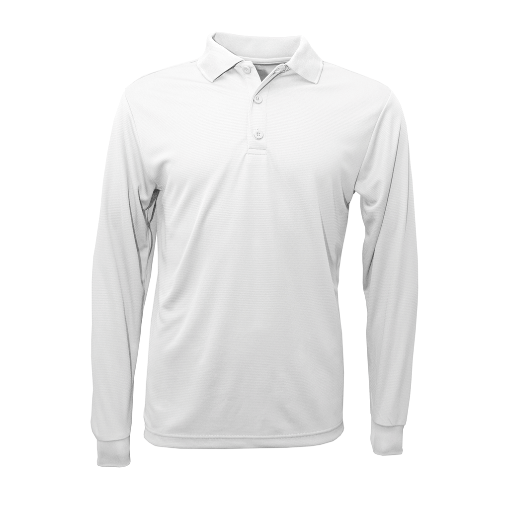 Even men who are environmentalists like a long sleeve polo for the cooler times. The BAW Men's White Eco Cool Tek Long Sleeve Polo will soon become a favorite. Your custom logo will allow customers, potential customers and everyone who sees it that your company cares about climate change and preserving natural resources because this polo is made from recycled polyester. The recycled polyester is a moisture-managing interlock fabric. The shirt has the standard three button placket with buttons that match the shirt color. Choose from popular colors including maroon, Kelly green, black and more. They are available in sizes S to 5X.Highlights