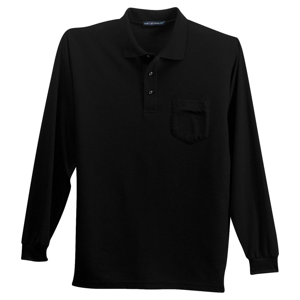 Port Authority Men's Black Long Sleeve Silk Touch Polo with Pocket