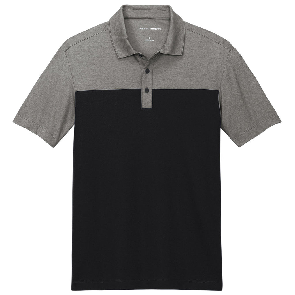 Port Authority Men's Deep Black/ Charcoal Heather Fine Pique Blend Blocked Polo