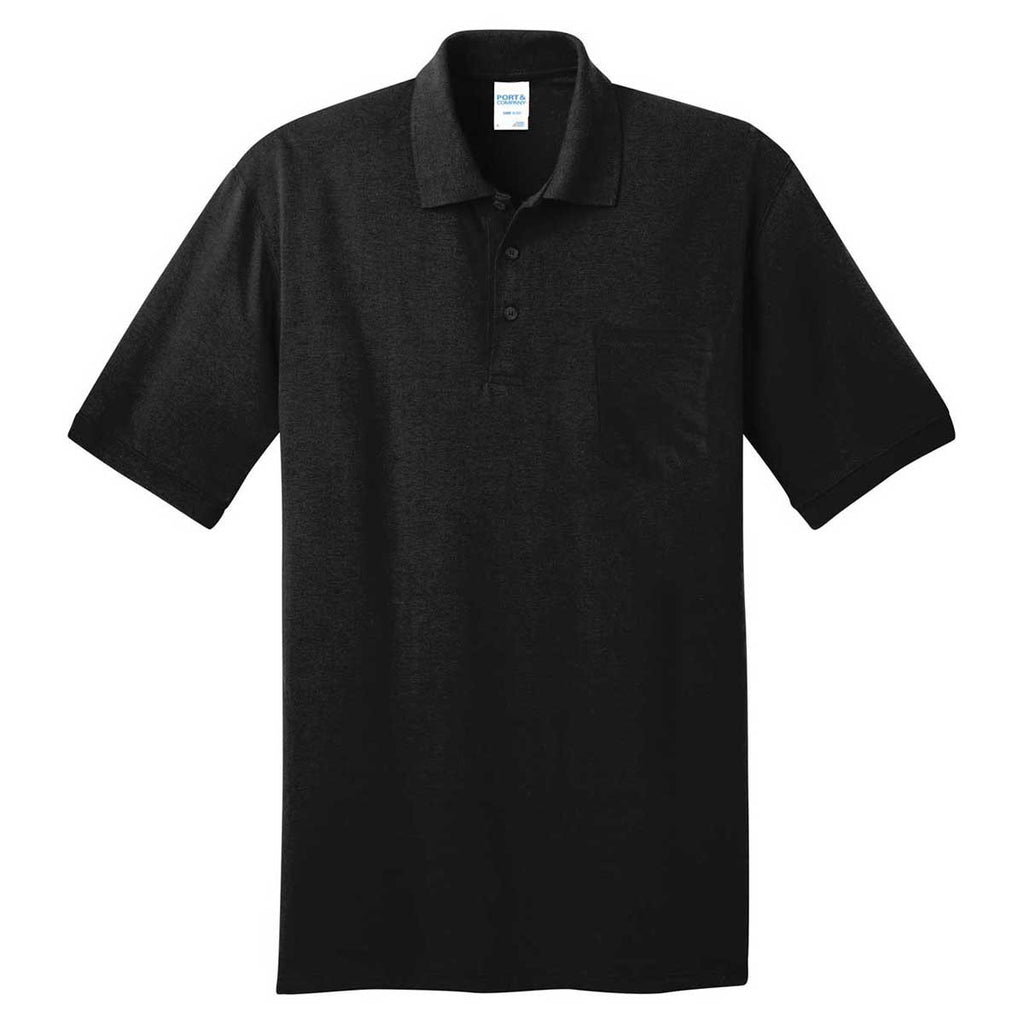 Inspired by minimalist architecture, this Port & Company Men's Jet Black Core Blend Jersey Knit Pocket Polo is a great answer to warm-weather uniforming shirts. It boasts a lightweight and comfortable construction with a balanced cotton-polyester blend. A pocket adds character to this casual polo while a 3-button placket ensures comfort fit. It can be easily paired with contrasting chinos, cargoes or denim for an effortless look and style. Double-needle stitching hem means durability. Spruce up your company's professionalism by having your logo on this polo that lets individuals know who to contact if they're interested in reaching out to your business.Highlights