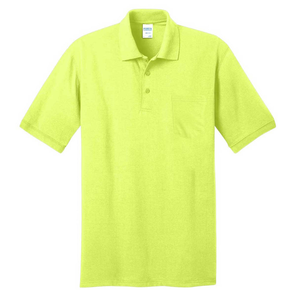 Port & Company Men's Safety Green Core Blend Jersey Knit Pocket Polo