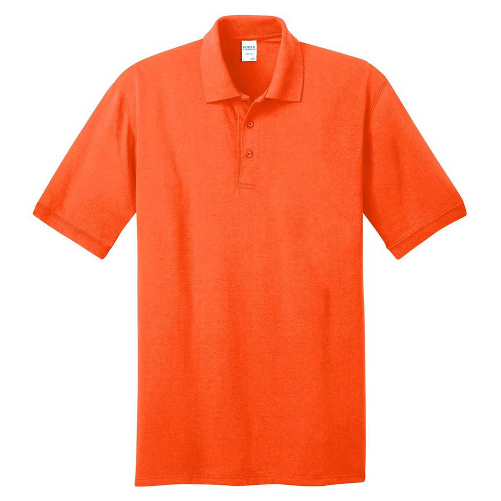 Energize your summer uniforming with this solid-hued style polo shirt crafted from a cotton-polyester blend that provides you with free movement and keeps you comfortable throughout the day. Treated with Soil Release for easy cleanups. It can be easily paired with contrasting chinos, cargoes or denim for an effortless look and style. Double-needle stitching hem means durability. With an emblazoned logo or branding message, this Port & Company Men's Safety Orange Tall Core Blend Jersey Knit Polo is perfect for employee's uniforms to enhance professionalism, foster company's corporate identity, raise awareness and to develop a sense of brand credibility and identity.Highlights