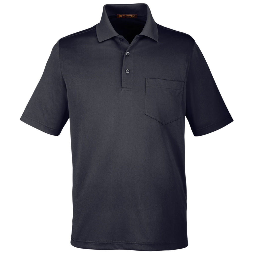 Harriton Men's Black Advantage Snag Protection Plus Pocket Polo