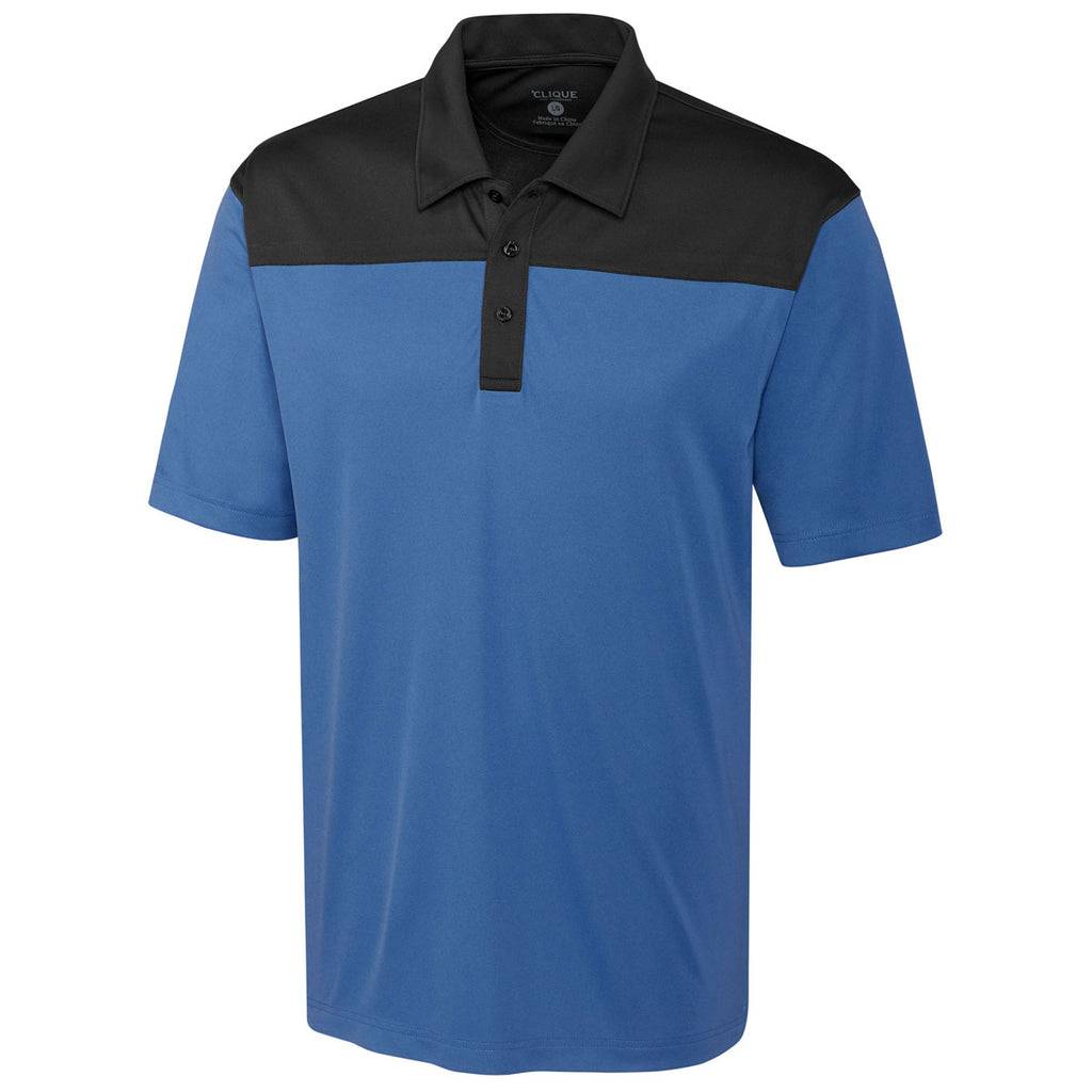 Two contrasting colors work brilliantly for the custom logoed Clique Men's Sea Blue/Titan Parma Colorblock Polo. As one of the most popular golf shirts in the Clique line of company apparel, the versatile polo is also appropriate for wearing at business seminars and conferences. Remember to add your company logo on the embroidery area to take advantage of the attention paid to the polo by your professional peers. Cover stitch detail enhances the aesthetic appeal of the polo, while ensuring the short sleeve shirt does not fray because of frequent use. The 100% polyester fabric resists rips and tears to look as fresh today as it looked the first time you put the polo on.Corresponding Women's Style:Clique Women's Sea Blue/White Parma Colorblock Polo
