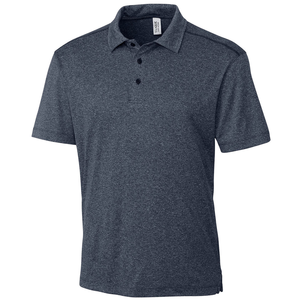 Brands with a unique and exciting point of view will find that the Clique Men's Navy Heather Charge Active Short Sleeve Polo is exactly what they've been searching for. Adding your company or team's custom logo or design to this cool, contemporary piece of apparel is an easy way to make your brand look cutting-edge. This classic piece of apparel exudes professionalism thanks to its collar and three button placket. The eye-catching colors and subtle pattern also give it a modern twist that young professionals will surely appreciate.Corresponding Women's Style: Clique Women's Navy Heather Charge Active Short Sleeve Polo