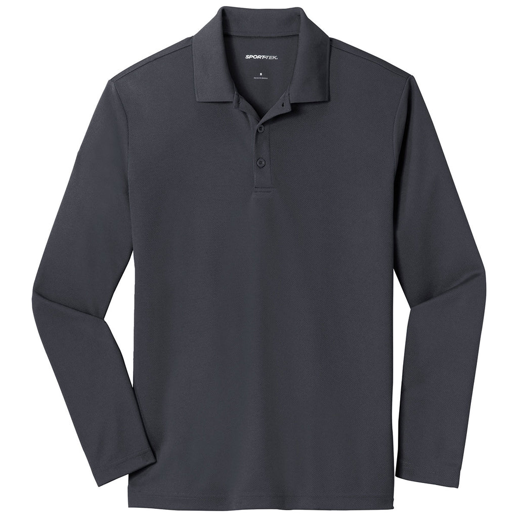 Thanks to a large embroidered area, the custom logoed Sport-Tek Men's Graphite Grey PosiCharge RacerMesh Long Sleeve Polo will deliver a highly effective marketing message at the next professional networking event. Because of proprietary RacerMesh technology, the stylish polo offers unsurpassed breathability to ensure your team remains comfortably dry at outdoor corporate events. The sleek flat-knit collar exudes panache, while dyed-to-match buttons present a refined appearance worthy of accomplished professionals. Add your company logo to spread the word about your products and services. The 100% polyester fabric resists rips and tears to ensure long lasting durability.Highlights