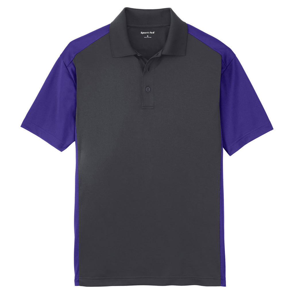 Sport-Tek Men's Iron Grey/Purple Colorblock Micropique Sport-Wick Polo