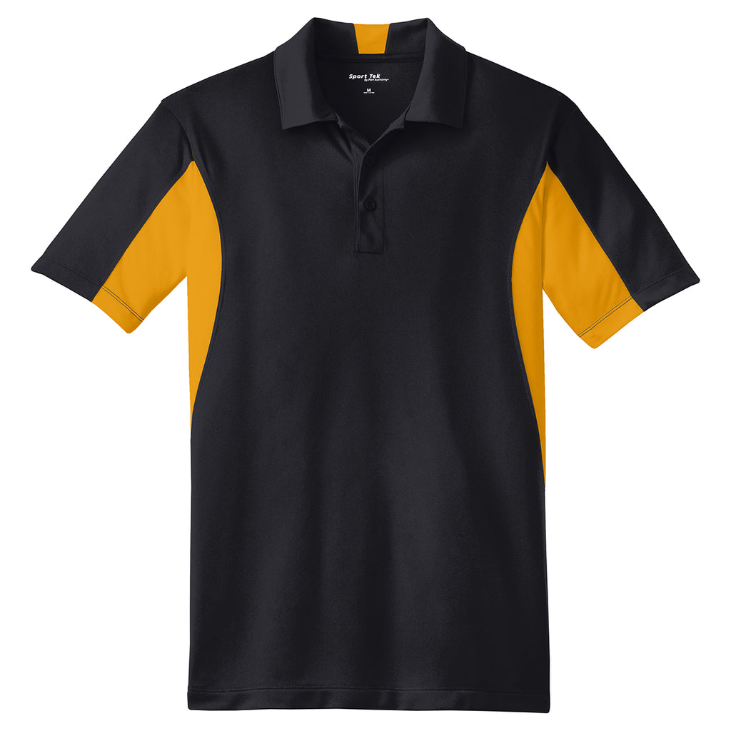 Sport-Tek Men's Black/ Gold Side Blocked Micropique Sport-Wick Polo