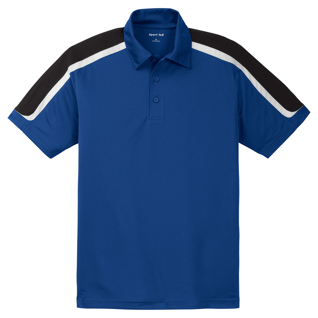 Sport-Tek Men's True Royal/Black/White Tricolor Shoulder Micropique Sport-Wick Polo