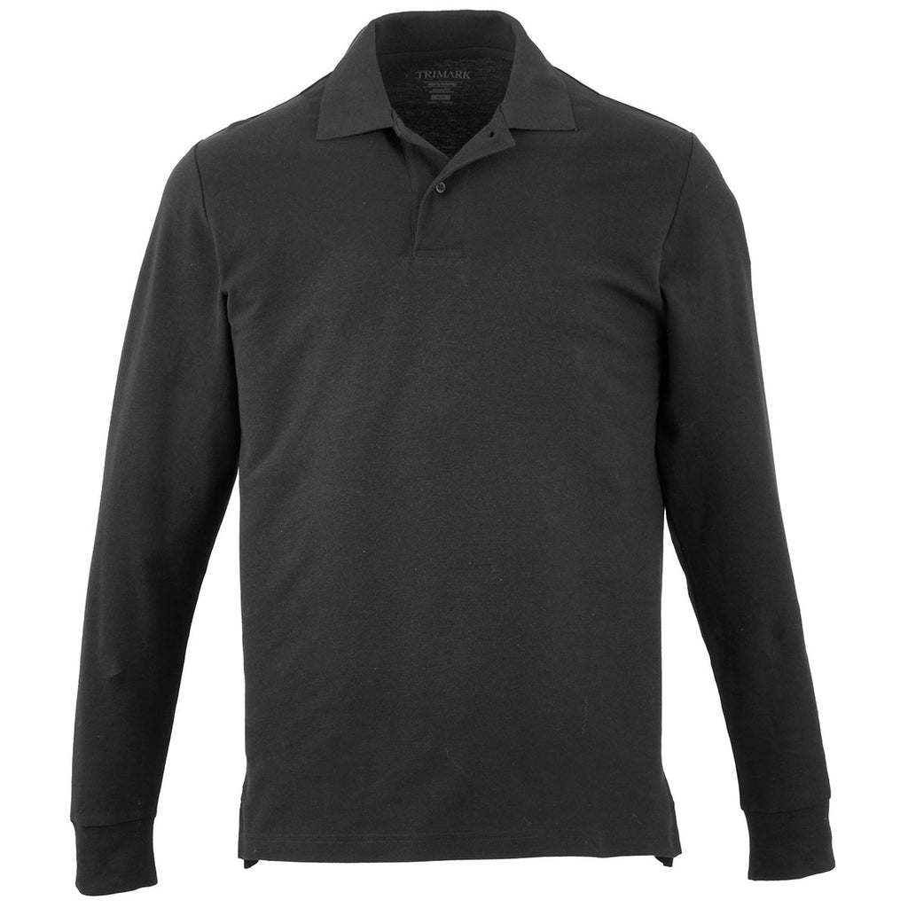 Elevate Men's Black Palo Long Sleeve 100% Cotton Pique Polo
