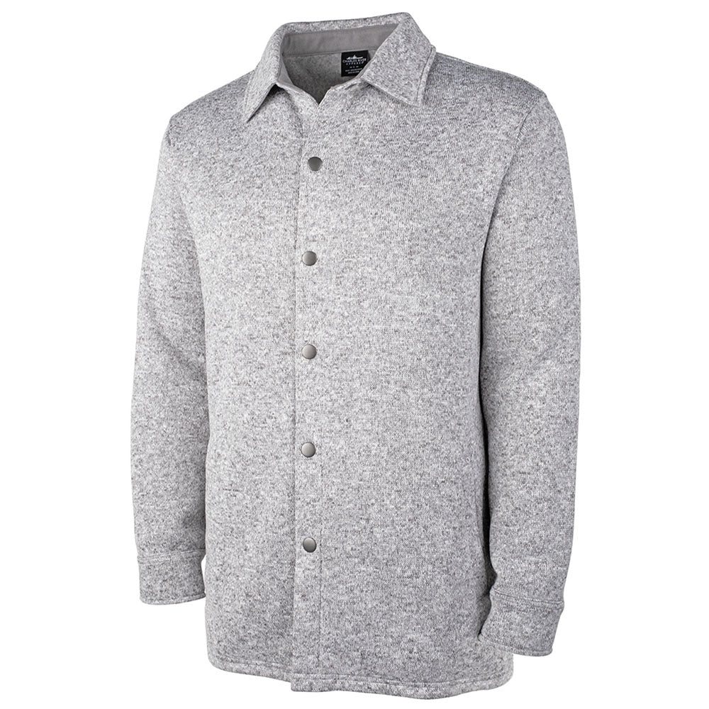 Charles River Men's Light Grey Heathered Fleece Snap Shacket
