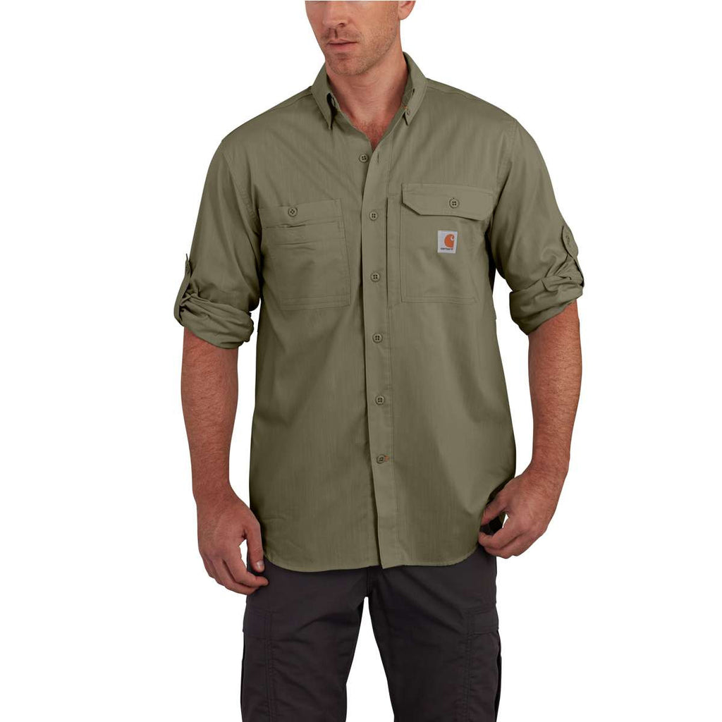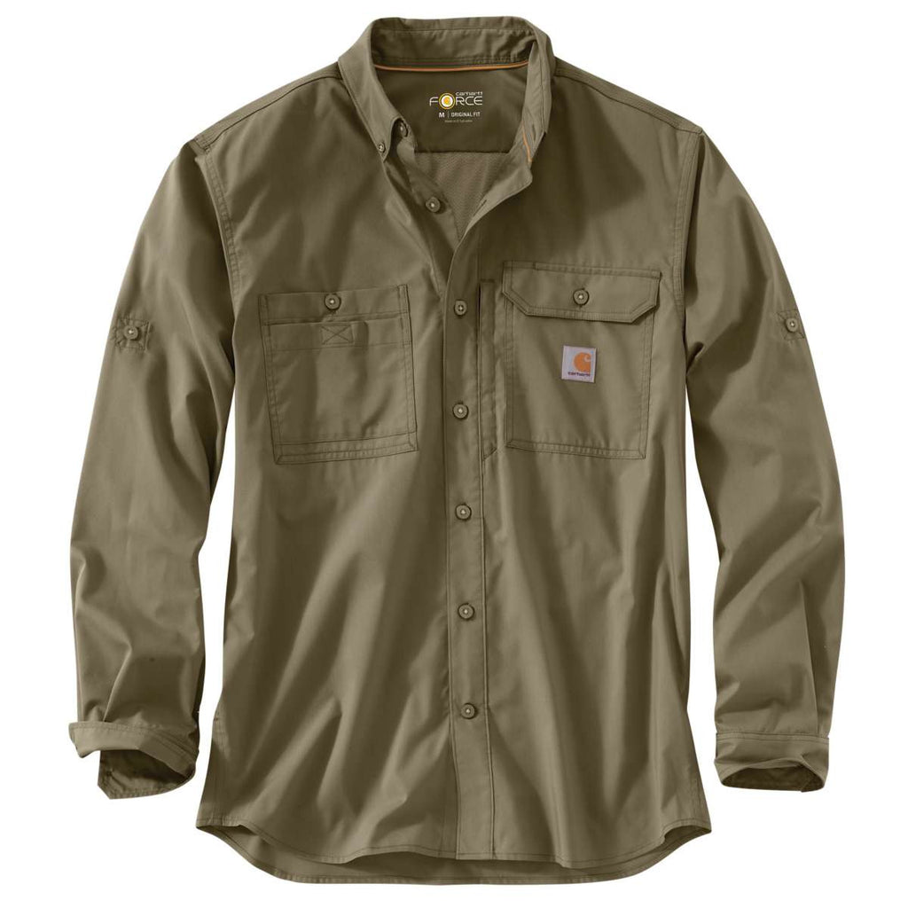 Carhartt Men's Burnt Olive Force Ridgefield Solid LS Shirt
