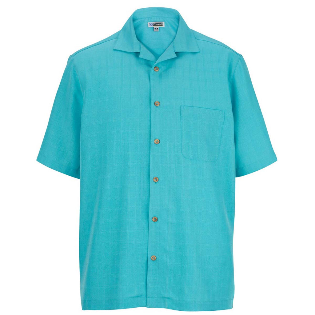 Be in comfort while you work hard in a custom Edwards Men's Aqua Jacquard Batiste Camp Shirt. Made from 100% polyester, this tone on tone batiste fabric is soft and subtle for those long days on the job. A great choice as employee apparel with your corporate embroidery proudly displayed, these camp style shirts will be an instant hit. The full cut allows for flexibility with an open neck and classic camp style. Add a company logo to use as corporate apparel for big or themed events.Highlights