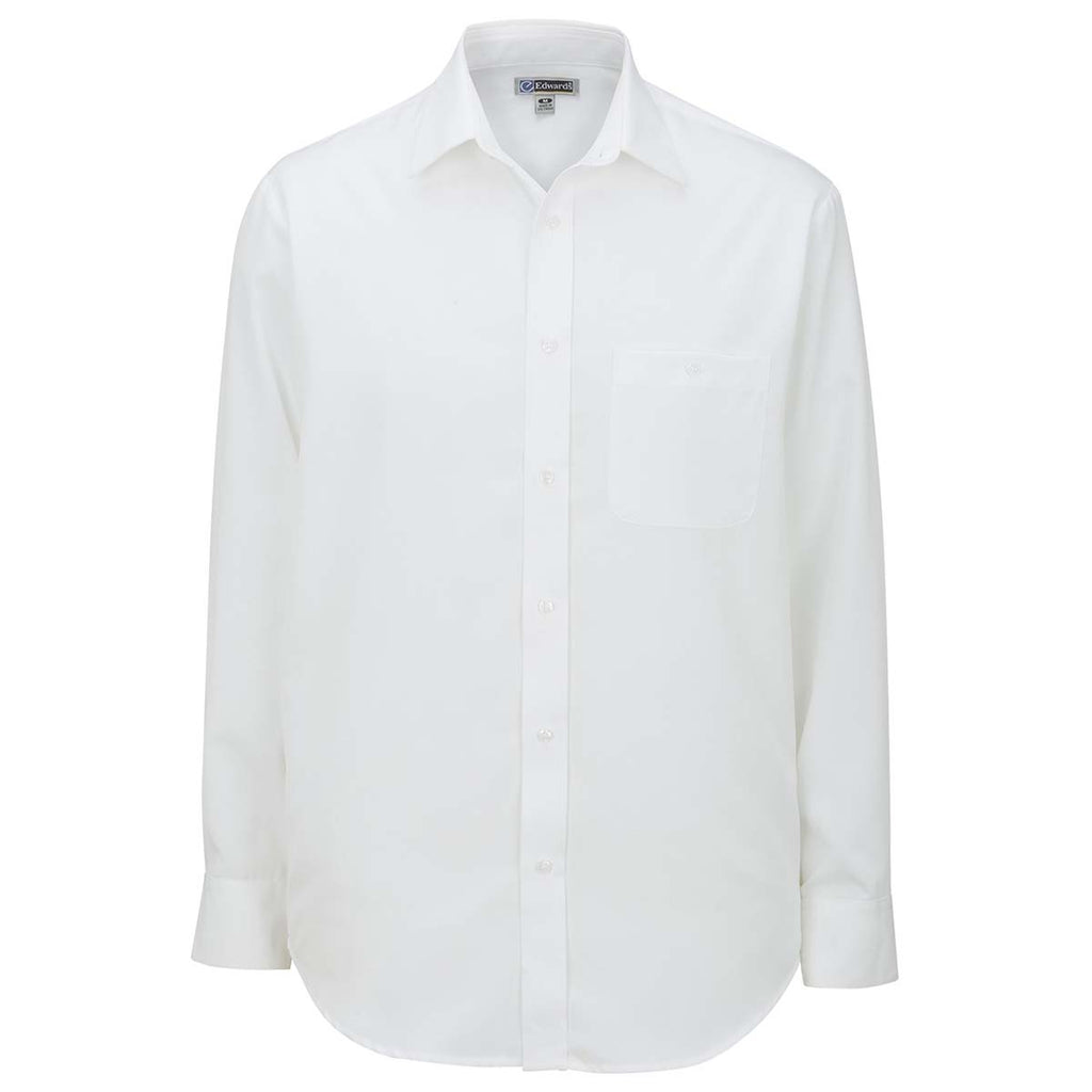 Create a custom updated look with the Edwards Men's White Batiste Shirt in a range of classic colors. Offering a modern fit in a contemporary style, this 100% polyester shirt is perfect for those who need employee apparel that demonstrates professionalism. Add a corporate embroidery to the long sleeve button up with chest pocket and pattern accents. Ideal for layering with a suit jacket as part of corporate uniforms the shirt is wrinkle resistant, offers soil release, and moisture wicking. Your custom logo will look beautiful on these shirts that offer the ability to be paired with jeans, slacks, or almost any type of attire you can imagine.