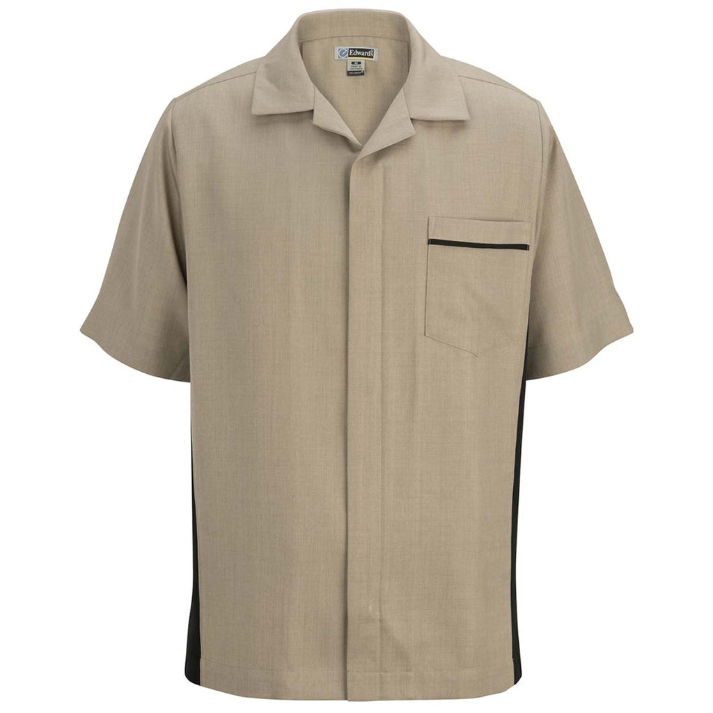 Add a custom embroidery to the Edwards Men's Cobblestone Premier Service Shirt to create a look unique to your company or organization. Made of 100% polyester the contemporary styling of this comfortable to wear, easily washable shirt is unmatched. Available in six color combinations this service shirt is ideal as part of employee apparel when paired with slacks or as corporate uniforms for large organizations. The snap top button and reverse front zipper creates a tidy appearance on the short sleeve shirt with contrasting side panels and piping.Highlights