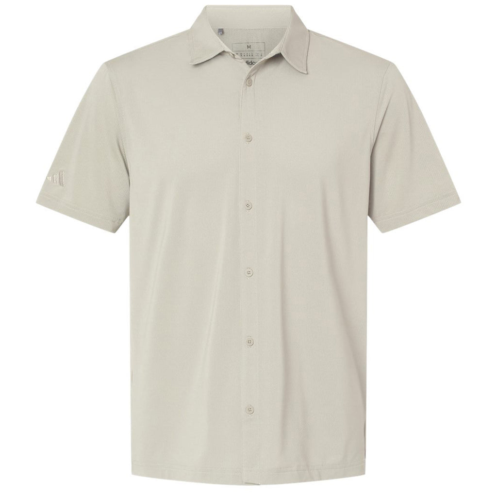 Design a corporate logo for the Adidas Men's Alumina Button-Down Short Sleeve Shirt for easy-to-wear employee apparel that will look and feel great all day. The polo collar adds to the overall look, and side hem slips allow for a range of movement. Perfect for servers, sales personnel, and your personal wardrobe.This product cannot ship outside of the United States.