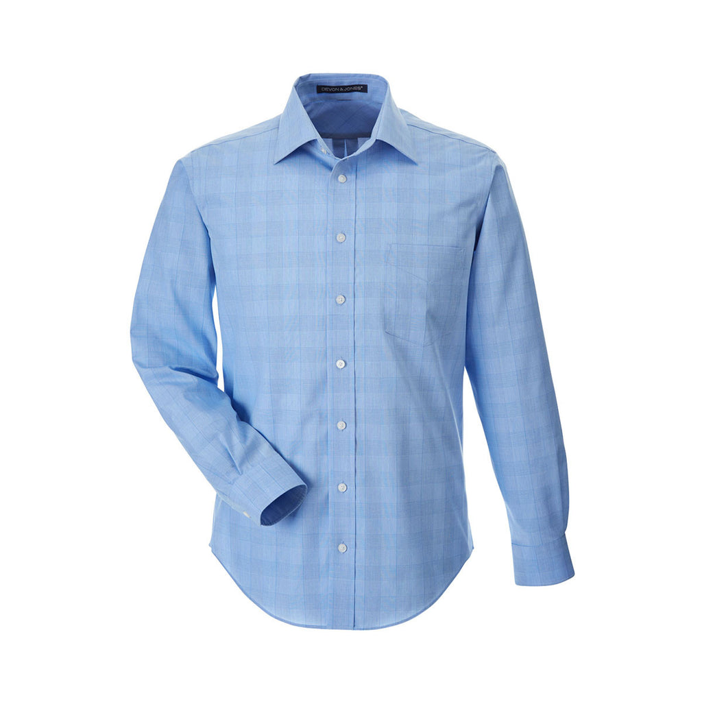 Devon & Jones Men's White/Light French Blue Crown Collection Glen PlaidCorresponding Women's Style: Devon & Jones Women's White/Light French Blue Crown Collection Glen Plaid