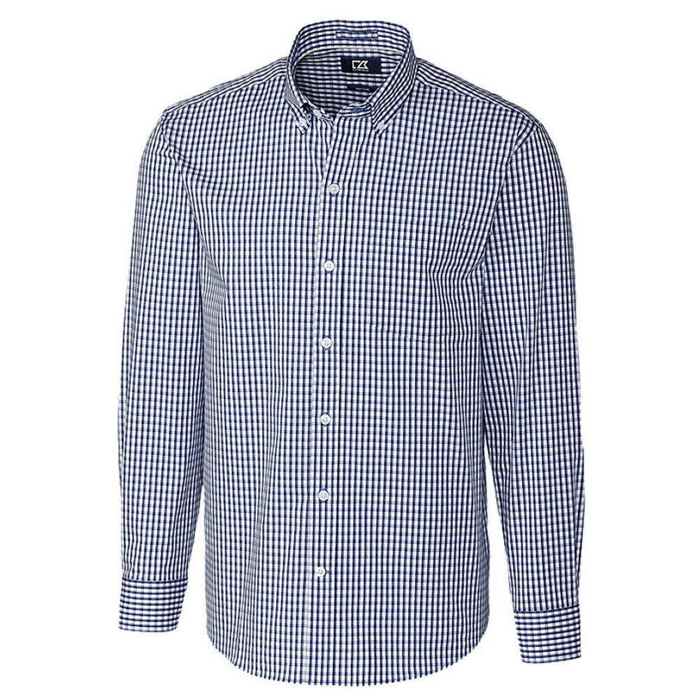 Cutter & Buck Men's Liberty Navy Long Sleeve Epic Easy Care Stretch Gingham Shirt