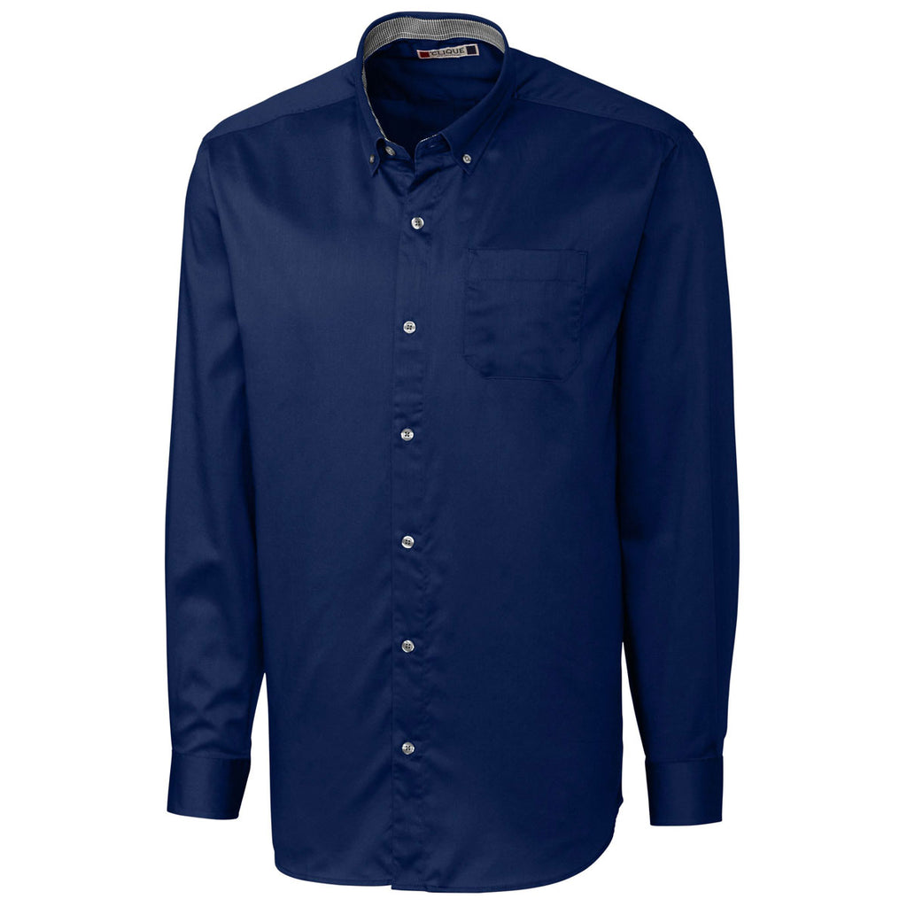If your team of dedicated employees often works in the field, order the custom logoed Clique Men's Navy Long Sleeve Bergen Stain Resistant Twill to ensure they put their best fashion feet forward. The polyester and cotton twill long sleeve shirt resist stains caused by accidental beverage spills. With a curved hem, you wear company apparel that impresses everyone you meet at industry trade shows. Attach your corporate logo on the large embroidery area to impress everyone with your products and services. Wear the button down collar shirt to a business meeting and keep it on afterwards when you and your professional peers mingle at your favorite watering hole.Corresponding Women's Style:Clique Women's Navy Long Sleeve Bergen Stain Resistant Twill