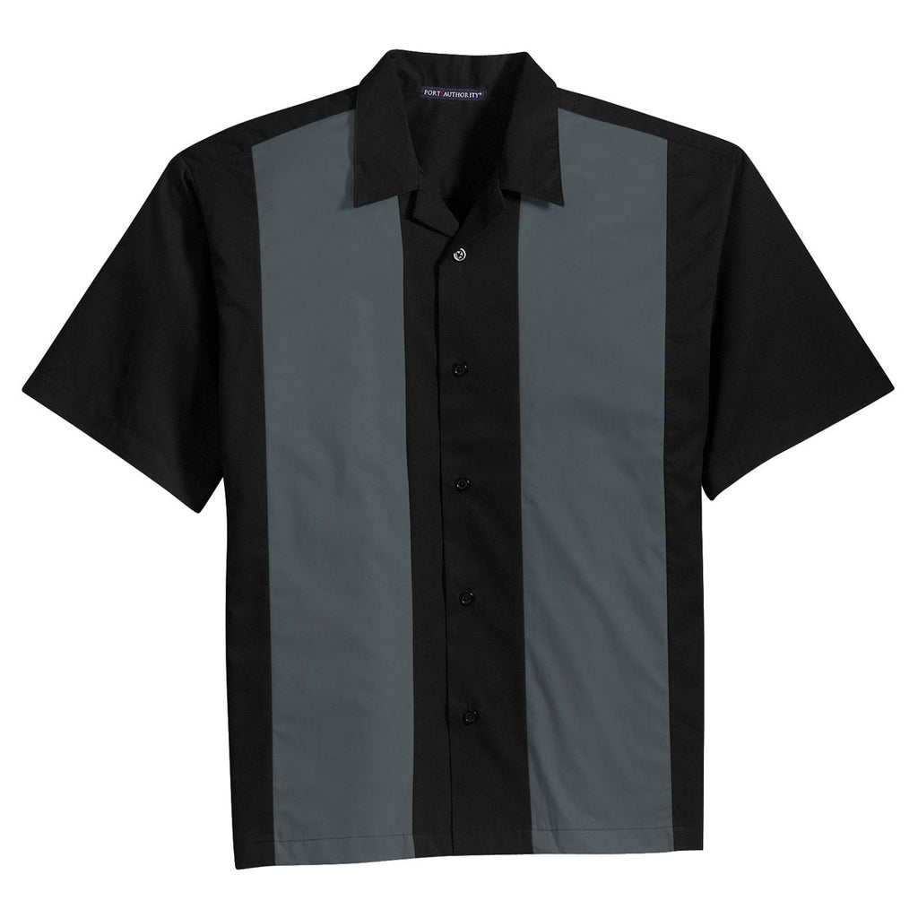 Port Authority Men's Black/Steel Grey Retro Camp Shirt