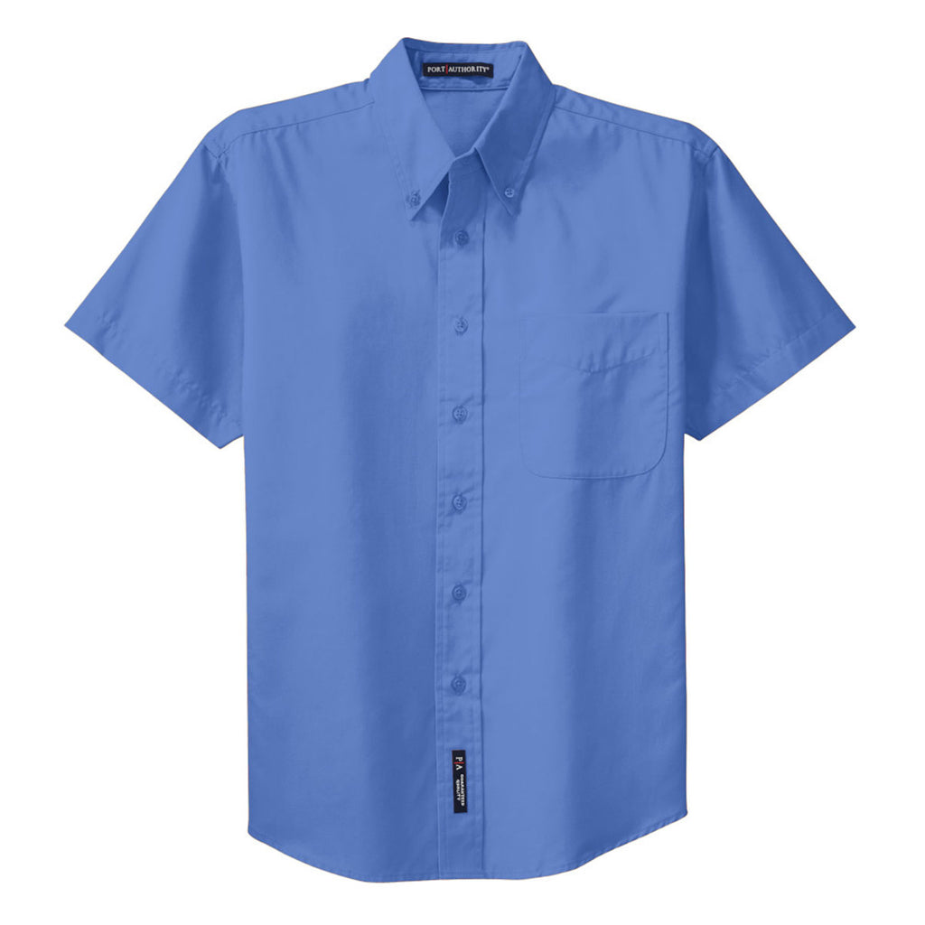 A short-sleeve button-down made for the workday but professional enough for upscale events? No, you're not dreaming: that's actually an apt description for Port Authority Men's Ultramarine Blue Short Sleeve Easy Care Shirt. The 4.5-ounce, 55/45 cotton/poly blend fabric is perfect for breathing, while the button-down collar ensures that your employees will always be event-appropriate. The patch pocket scores points for function as well as dressiness, and the dyed-to-match buttons are as subtle as they are necessary. And if you ask us, a good work shirt should be understated, allowing your own corporate embroidery and custom business logo to earn the attention.Highlights