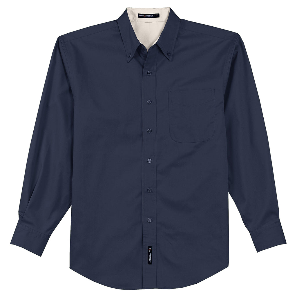 Port Authority Men's Navy/Light Stone Extended Size Long Sleeve Easy Care Shirt