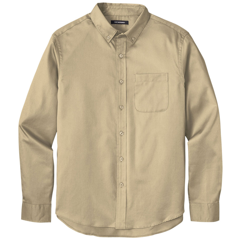 Performance meets fashion in the custom Port Authority Men's Wheat Long Sleeve SuperPro React Twill Shirt. This wrinkle resistant button down is perfect for the office, but easily transitions to out and about. Add a company logo to use as corporate apparel for yourself or an entire company or for special events. Try a custom logo to build up your own wardrobe in a variety of colors or to add to your logoed apparel line. The button down shirt with button down collar and adjustable cuffs is ideal for the office, but can be nicely paired with a suit or jacket for a nice dinner out with family and friends.Corresponding Women's Style:Port Authority Women's Wheat Long Sleeve SuperPro React