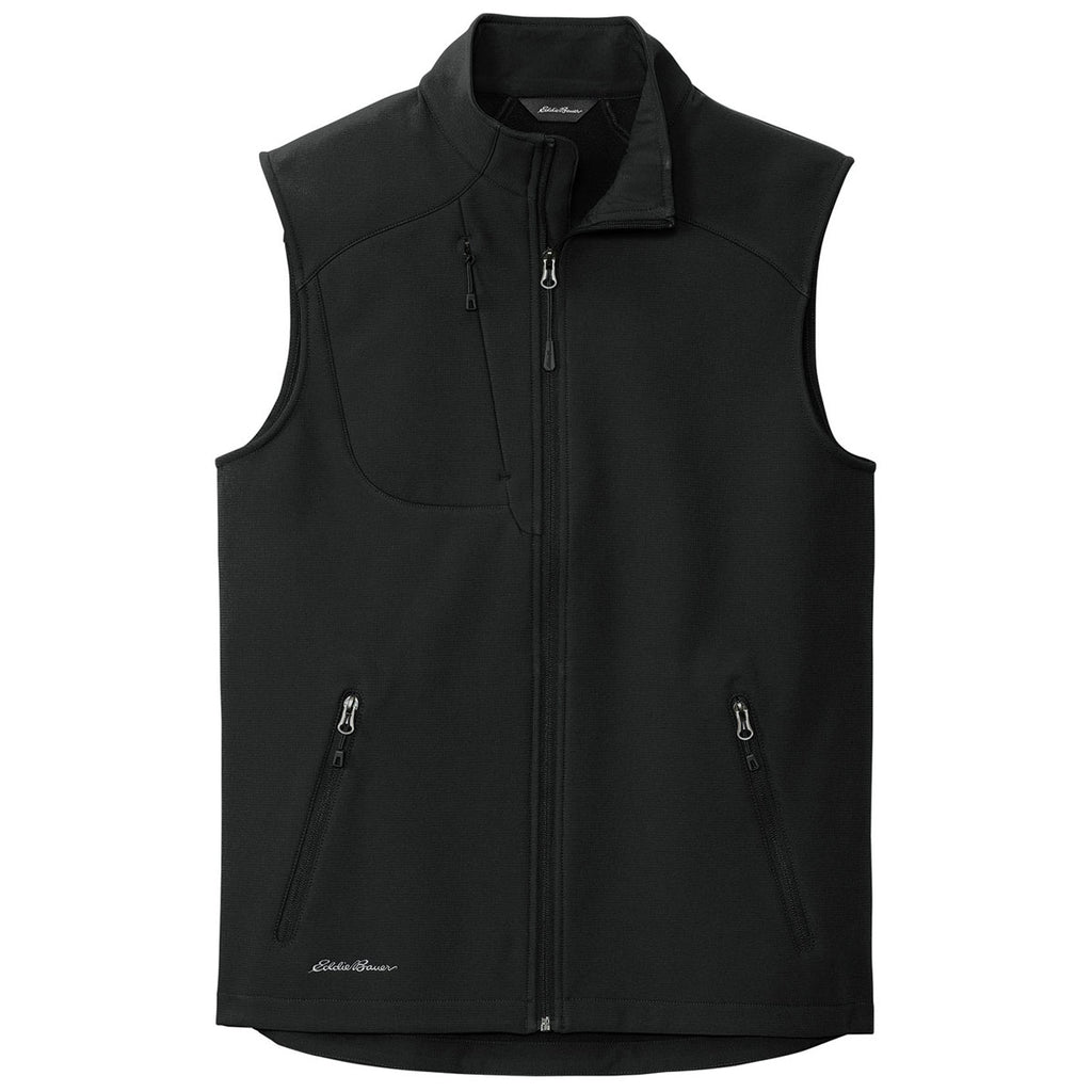 Order the Eddie Bauer Men's Deep Black Stretch Soft Shell Vest for extra warmth on a chilly night. Easily layer with any dress shirt for a professional corporate look. Fleece lining for a soft and comfortable fall day. Add a custom logo and broadly display your company's brand.