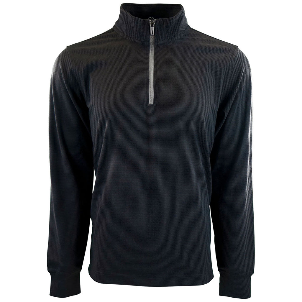Enjoy a custom embroidered look with the Vantage Men's Black Grid Quarter Zip Pullover. This waffle-textured fleece is great as a top layer whether you are enjoying a quick commute, going for a run, or hanging with friends. It is a wonderful addition to any wardrobe due to its versatility. Place an order right away so you do not miss out.Corresponding Women's Style: Vantage Women's Black Grid Quarter Zip Pullover