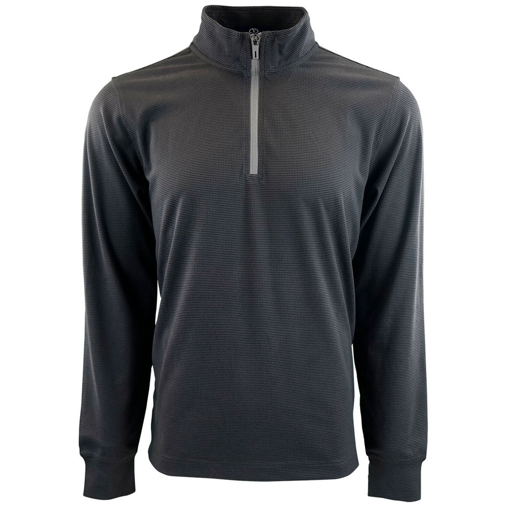 Enjoy a custom embroidered look with the Vantage Men's Dark Grey Grid Quarter Zip Pullover. This waffle-textured fleece is great as a top layer whether you are enjoying a quick commute, going for a run, or hanging with friends. It is a wonderful addition to any wardrobe due to its versatility. Place an order right away so you do not miss out.Corresponding Women's Style: Vantage Women's Dark Grey Grid Quarter Zip Pullover
