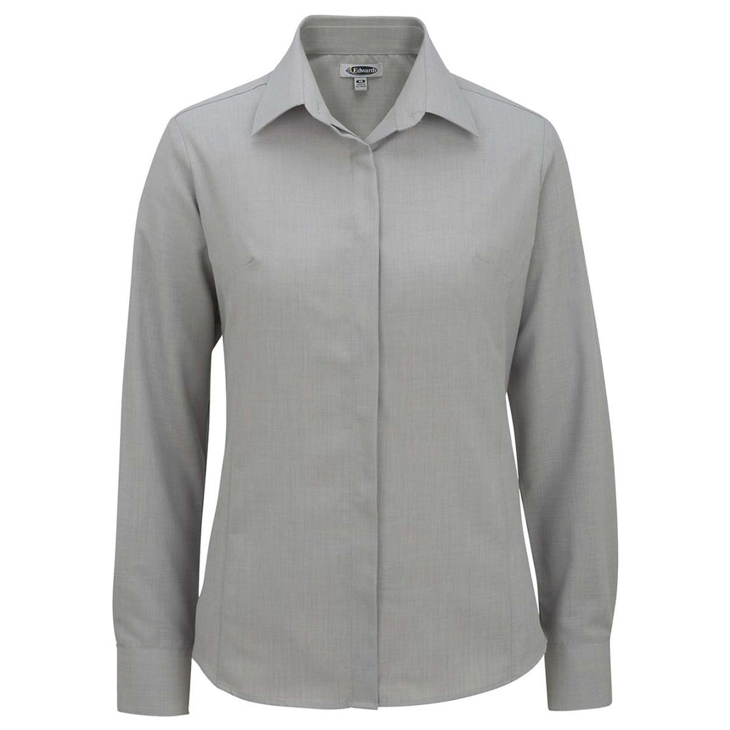 Create a custom updated look with the Edwards Women's Platinum Batiste Cafe Shirt in a range of classic colors. Offering a flattering fit in an understated style, this 100% polyester shirt is perfect for those who need employee apparel that demonstrates professionalism. Add a corporate embroidery to the long sleeve button up with two button adjustable cuff and narrow collar with hidden placket. Ideal for layering with a suit jacket as part of corporate uniforms the shirt is wrinkle resistant, offers soil release, and moisture wicking. Your custom logo will look beautiful on these shirts that offer the ability to be paired with jeans, slacks, or almost any type of attire you can imagine.Highlights