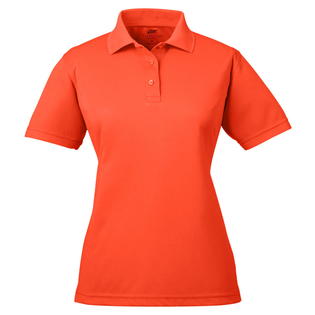 UltraClub Women's Orange Cool & Dry Mesh Pique Polo