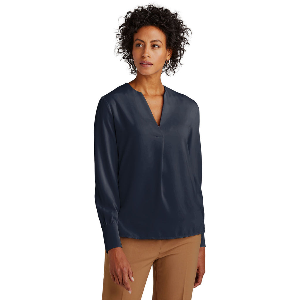 Choose a custom logo for the Brooks Brothers Women's Night Navy Open Neck Deep Black Satin Blouse for a professional and always reliable classic. The soft satin has a uniquely matte feel. Easily layered with any sweater or jacket for all-day comfort. Reach out to add an easy elegant touch to any wardrobe.
