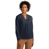 Brooks Brothers Women's Night Navy Open Neck Satin Blouse