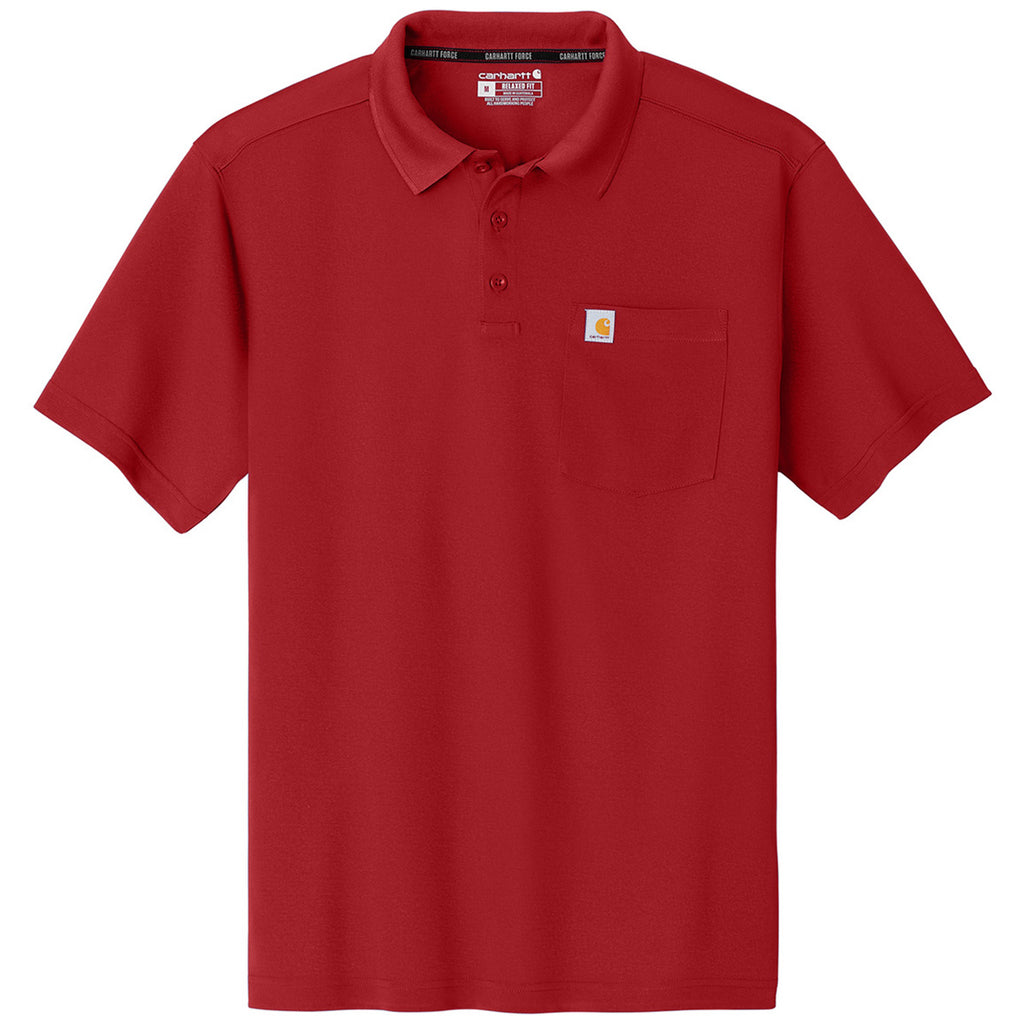 Try a corporate logo on the Carhartt Men's Crimson Red Force Snag-Resistant Pocket Polo to make sure your employees are easily recognized. The mid-weight polo is rugged, quick-drying, and snag-resistant to keep you comfortable and looking great all day, whether on the job or hanging out with friends.This product can only ship within the United States and Canada.