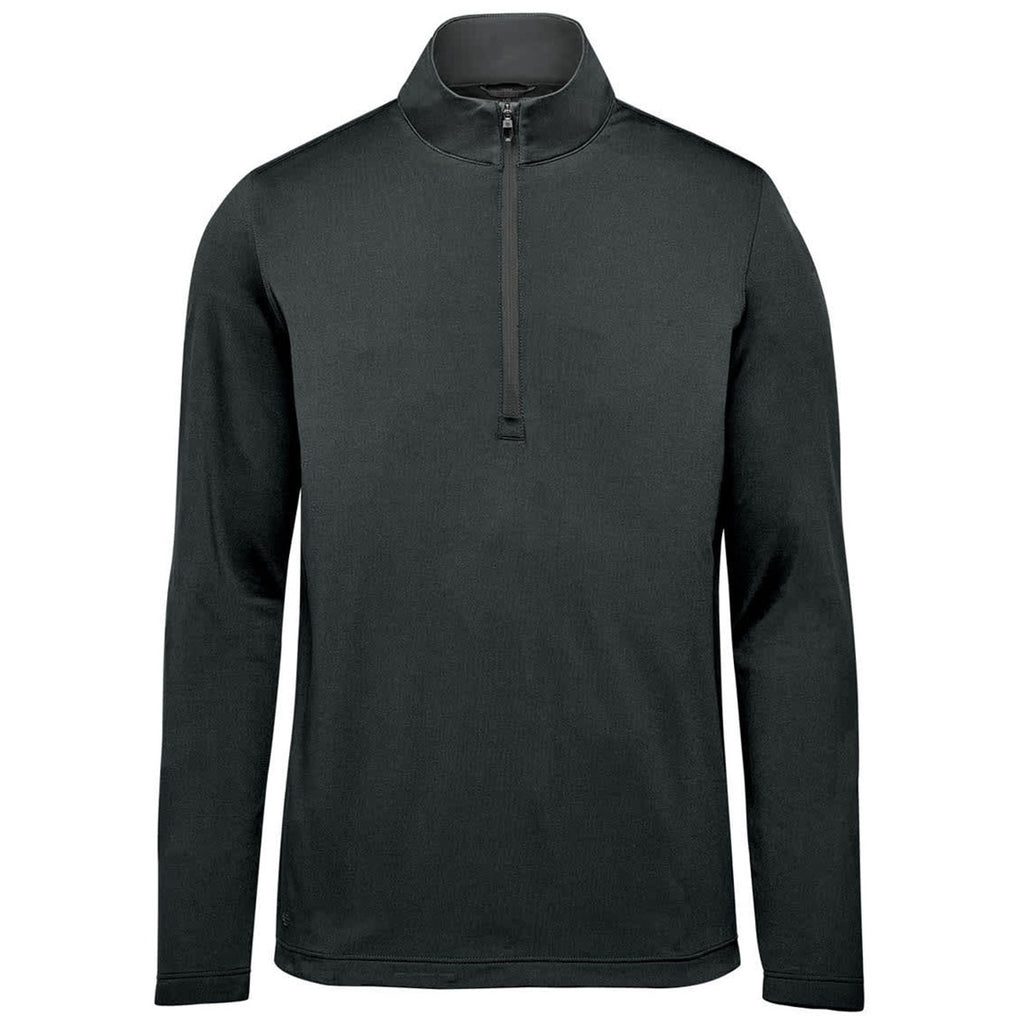 Stormtech Men's Black/Granite Zermatt 1/4 Zip Pullover delivers classic style and modern performance in a custom layering essential. The smooth, technical fabric wicks away moisture and holds its shape, while the quarter-zip design allows easy ventilation. Ideal for uniforms or promotional wear, it's a versatile piece that transitions seamlessly from office to outdoor settings.