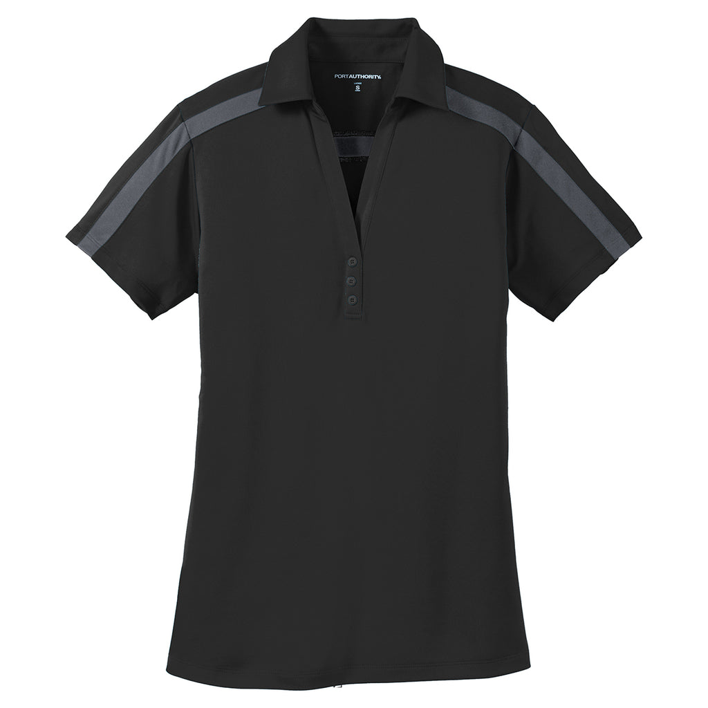 Port Authority Women's Black/Steel Grey Silk Touch Performance Colorblock Stripe Polo
